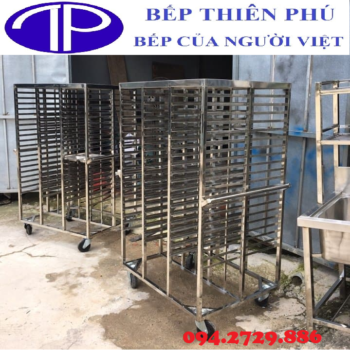 Xe đẩy khay cơm bằng inox 201( 304) loại 2 ngăn 84 khay