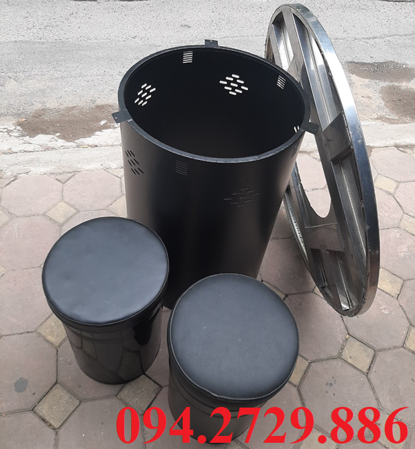 Xung quanh chân bàn thùng phuy được đột lỗ thoáng khí, thẩm mỹ.